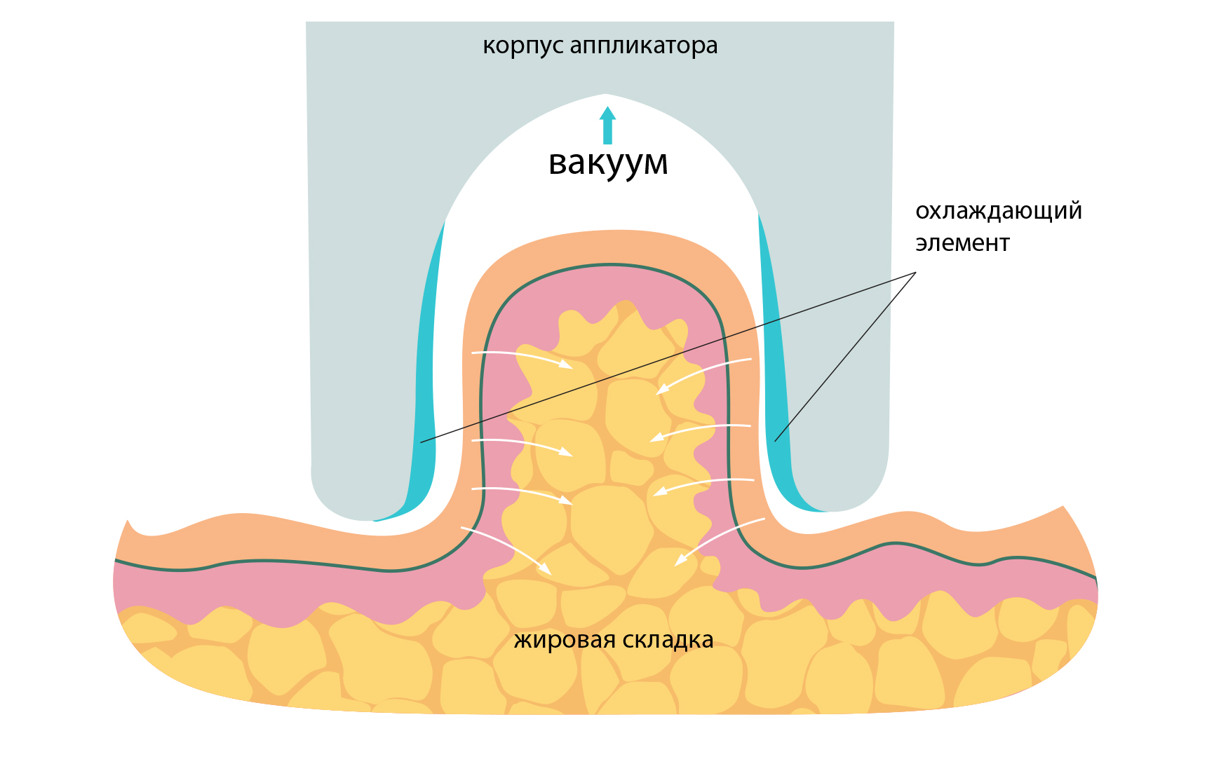 температуры, разрушая адипоциты и приводя к уменьшению количества жировой ткани.