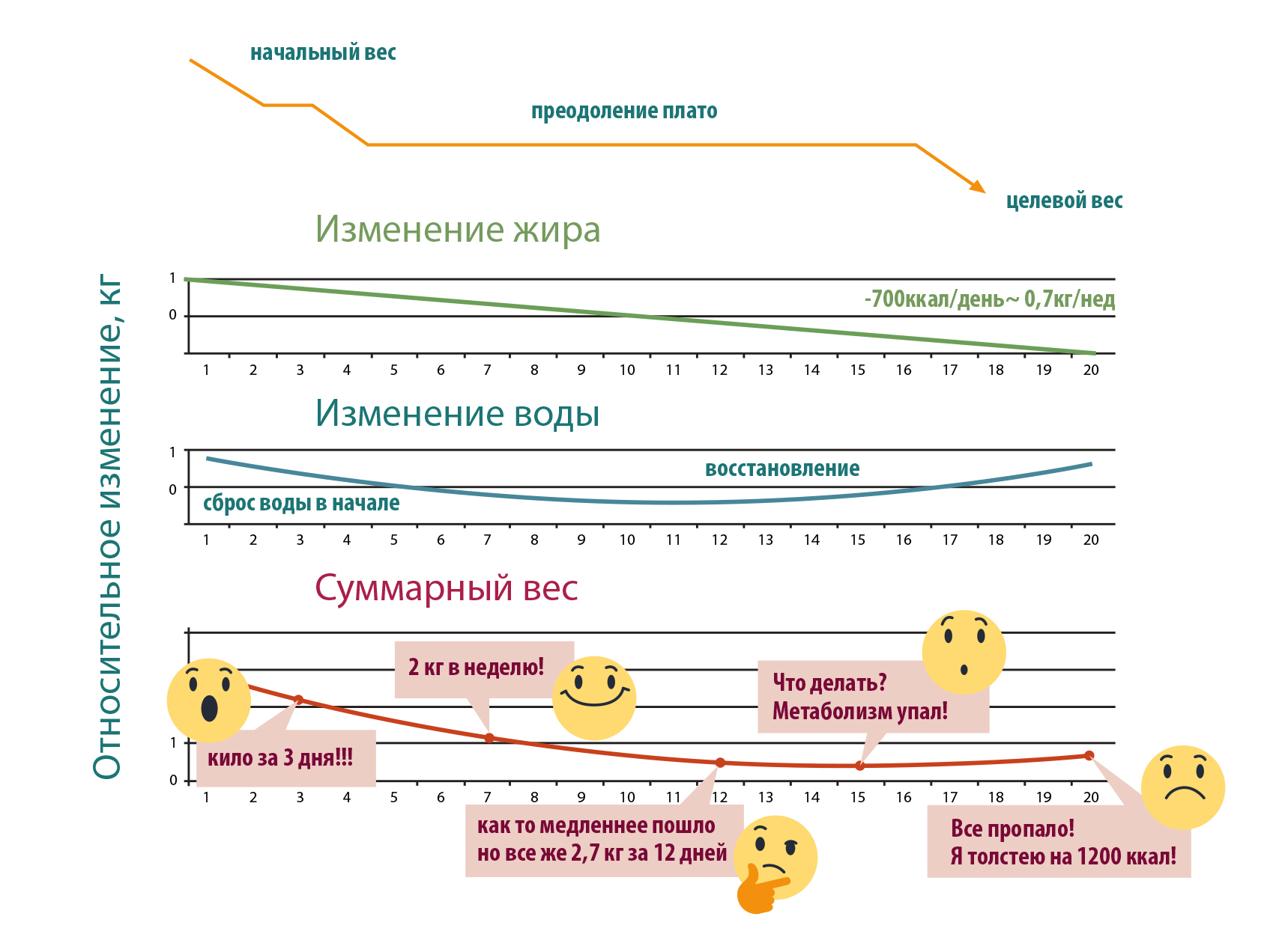 первые килограммы. И тем тяжелее воспринимается «плато», когда мы тратим те же усилия, но не видим результата.