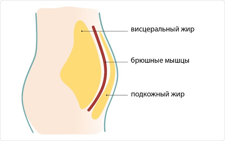 - Уровень висцерального жира (наиболее опасная для здоровья метаболически активная жировая ткань, расположенная вокруг внутренних органов)